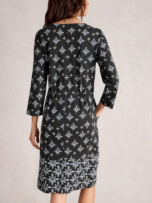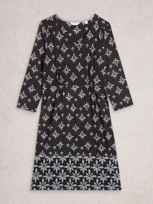 White Stuff Women’s Tallie Knee Length V Neck Jersey Dress | Black Multi