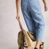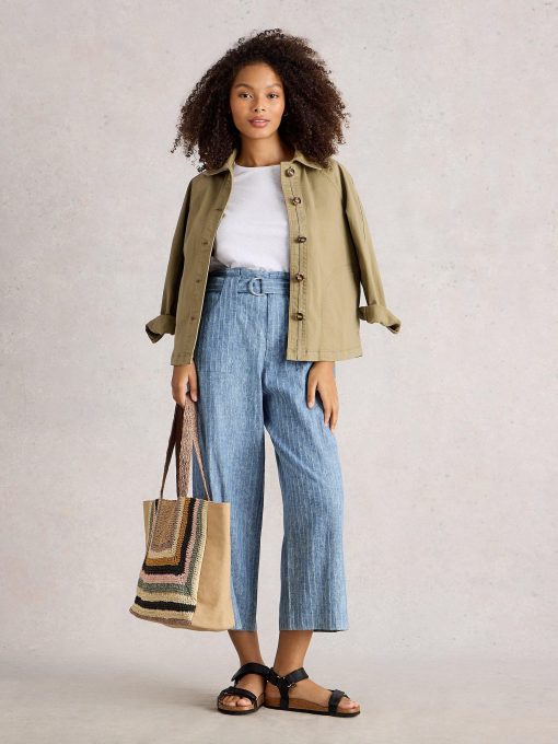 These wide leg trousers have an adjustable belt, a gathered waist and are made with 100% organic cotton. They’re cropped too making them super summery.’nbsp;