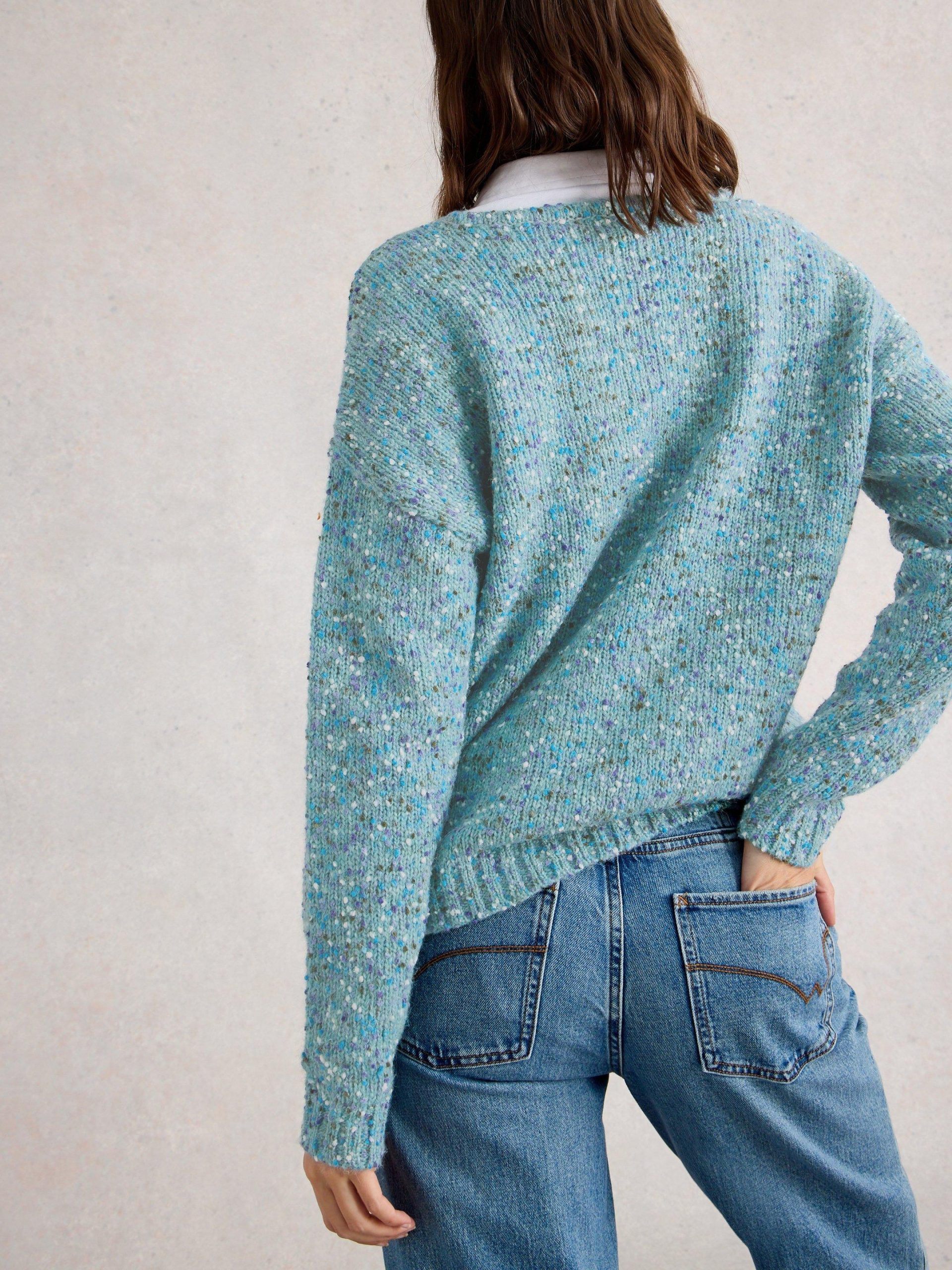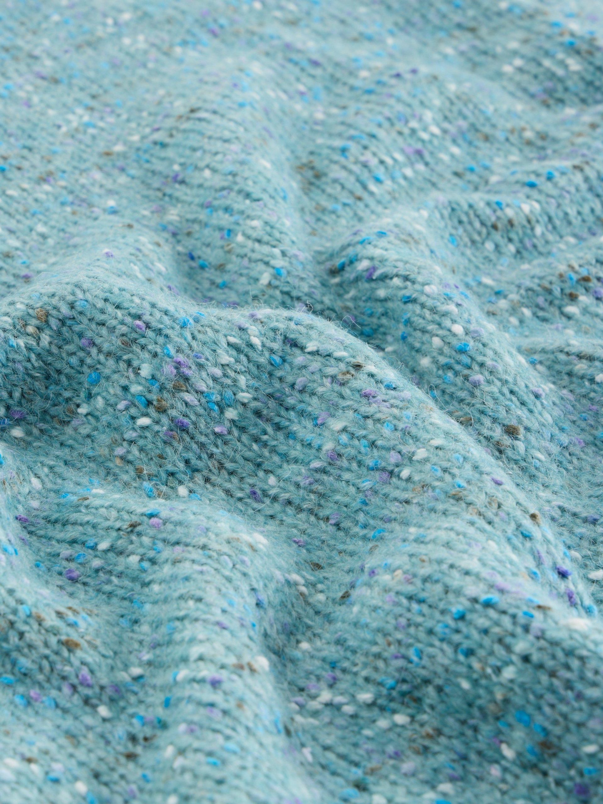 Made with flecks of multicoloured yarn. A bit like wearable confetti. So it’s always a party when you walk in.