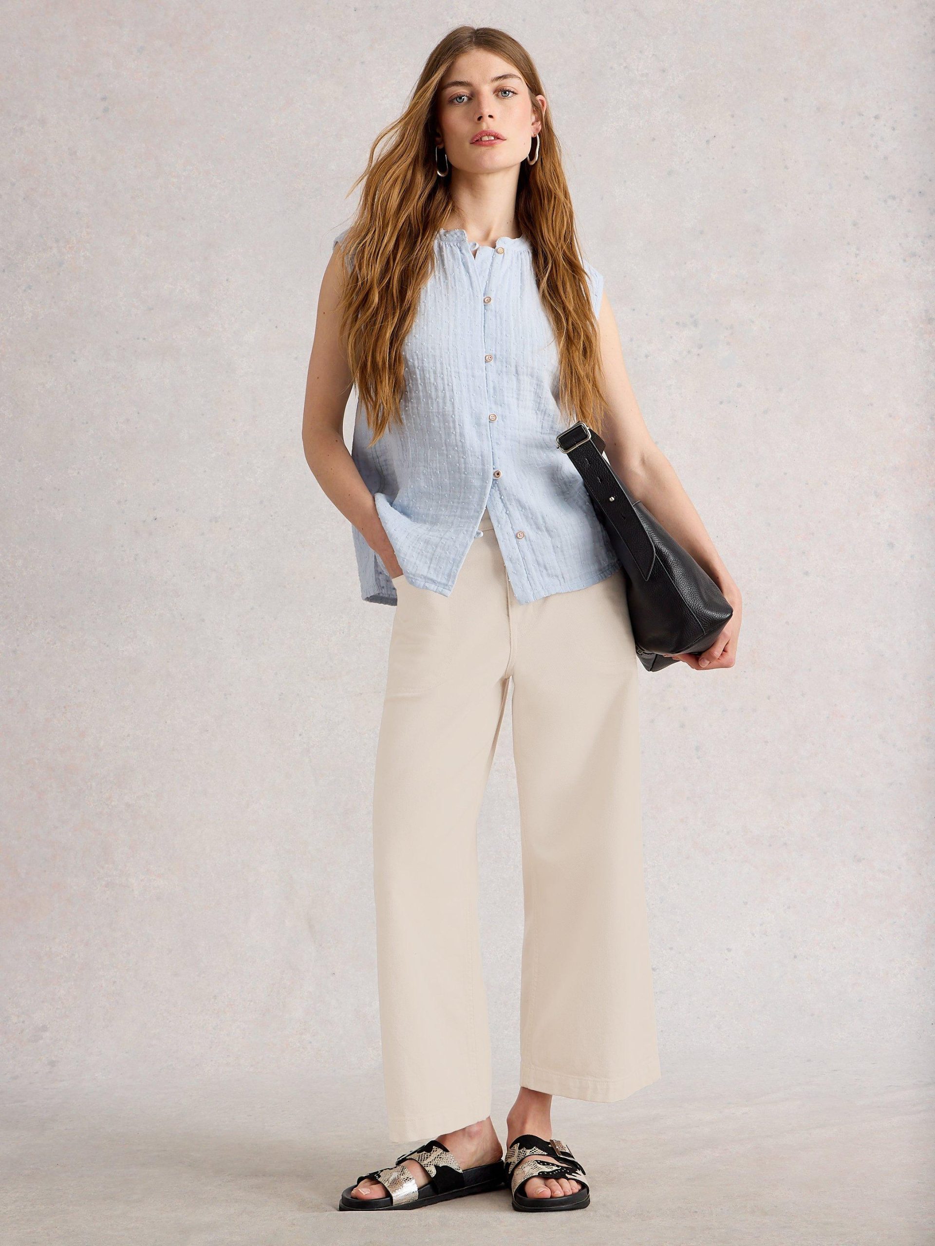 Wide leg jeans are back, and we are so glad to see them. These ones are comfy and cropped at the ankle (perfect for showing off a great pair of shoes).n