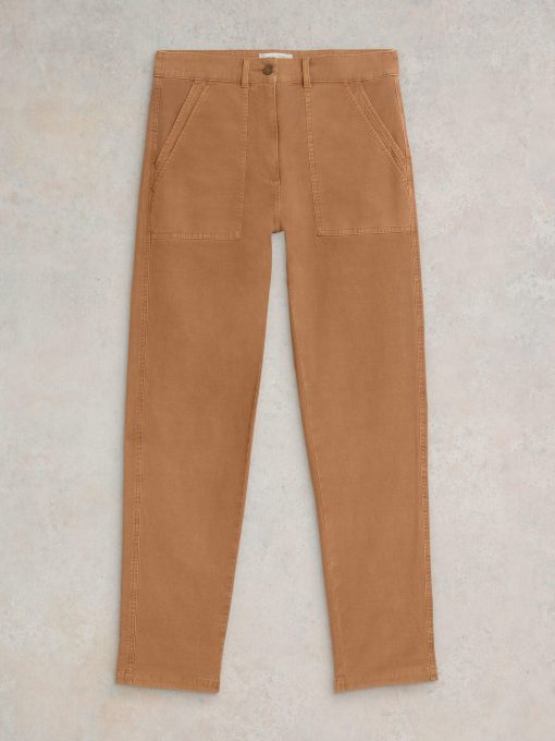 Tapered leg chinos. Relaxed cut. Organic cotton mix with a touch of stretchy spandex. Soft and comfy, giving your jeans the day off just got easier.