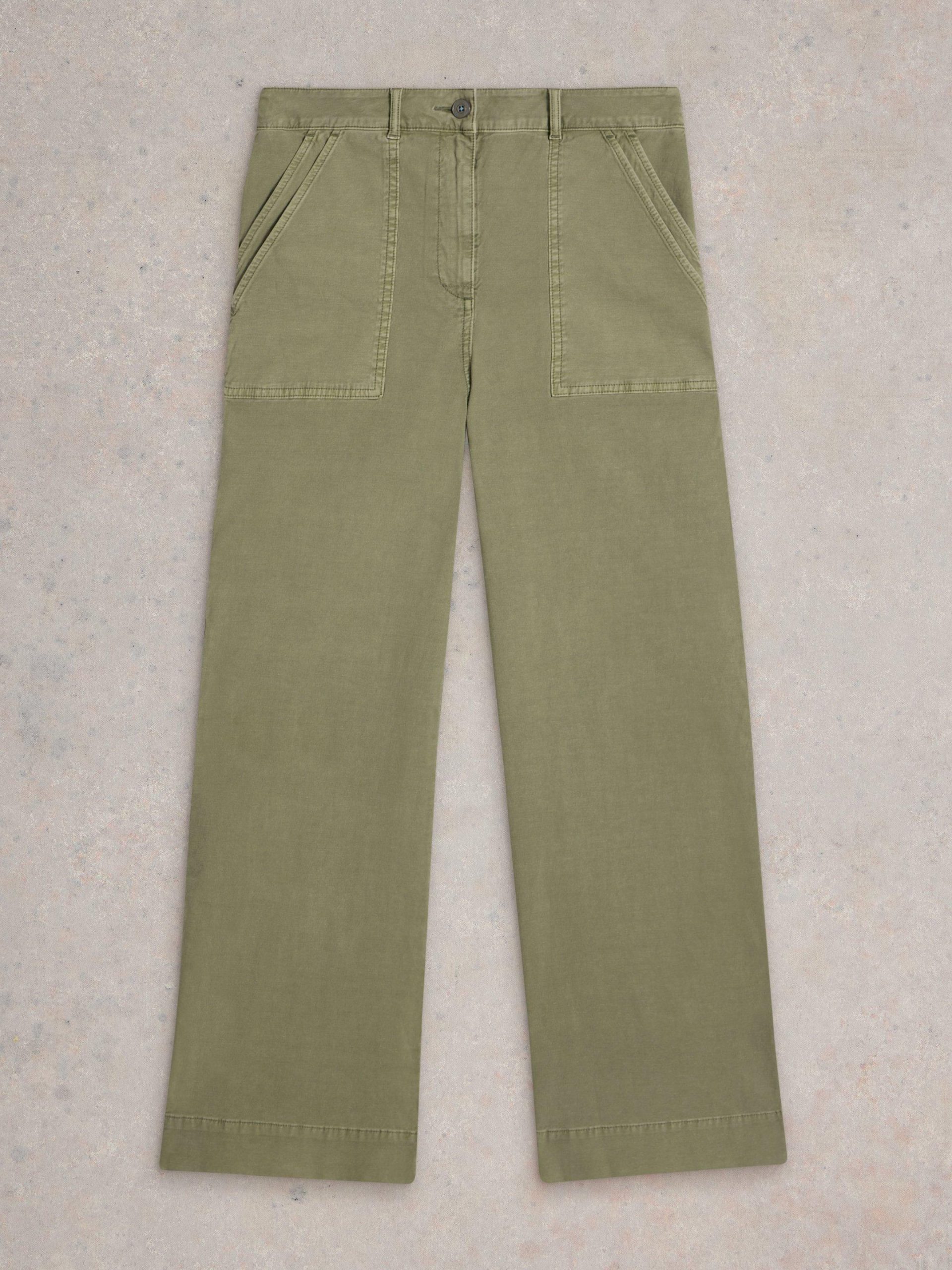 White Stuff Women’s Twister Chino Wide Leg Trouser | Khaki Green