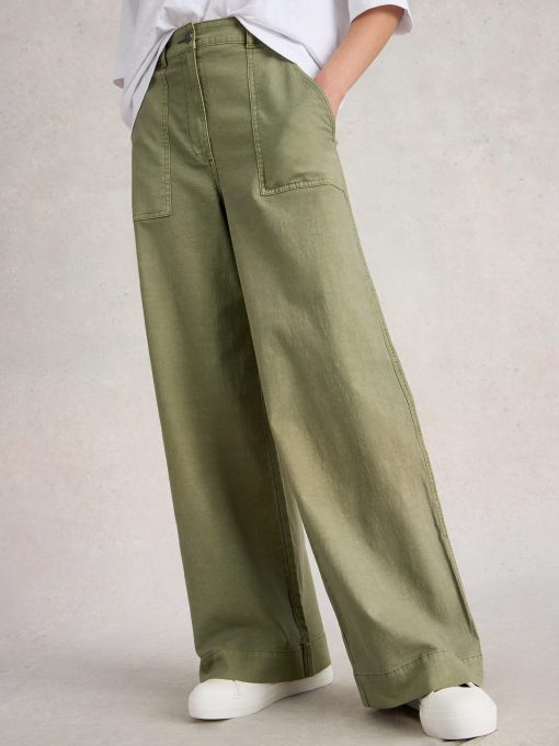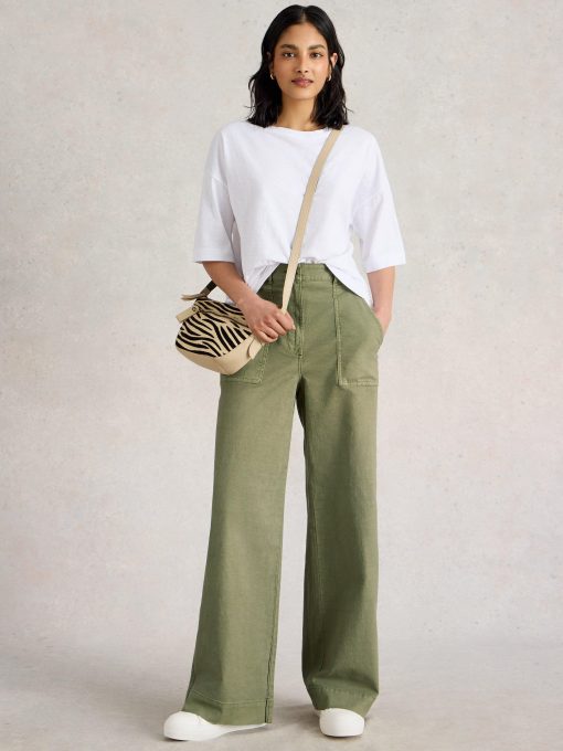White Stuff Women’s Twister Chino Wide Leg Trouser | Khaki Green