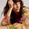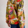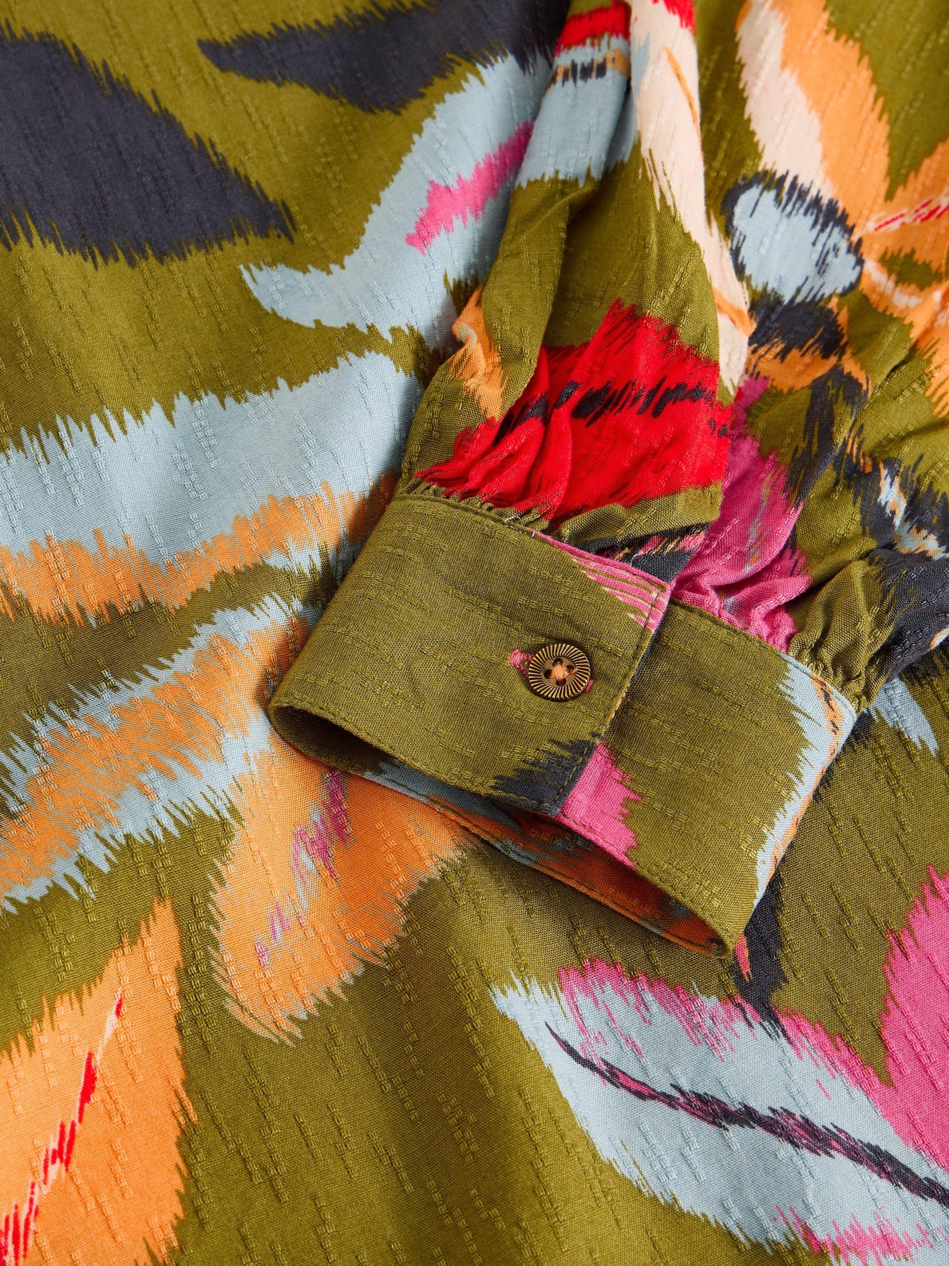 A soft, fluttery feel. A multicoloured print that reminds us of the tropical room at the local botanical gardens. (Guess where we’ll be wearing this top to.)
