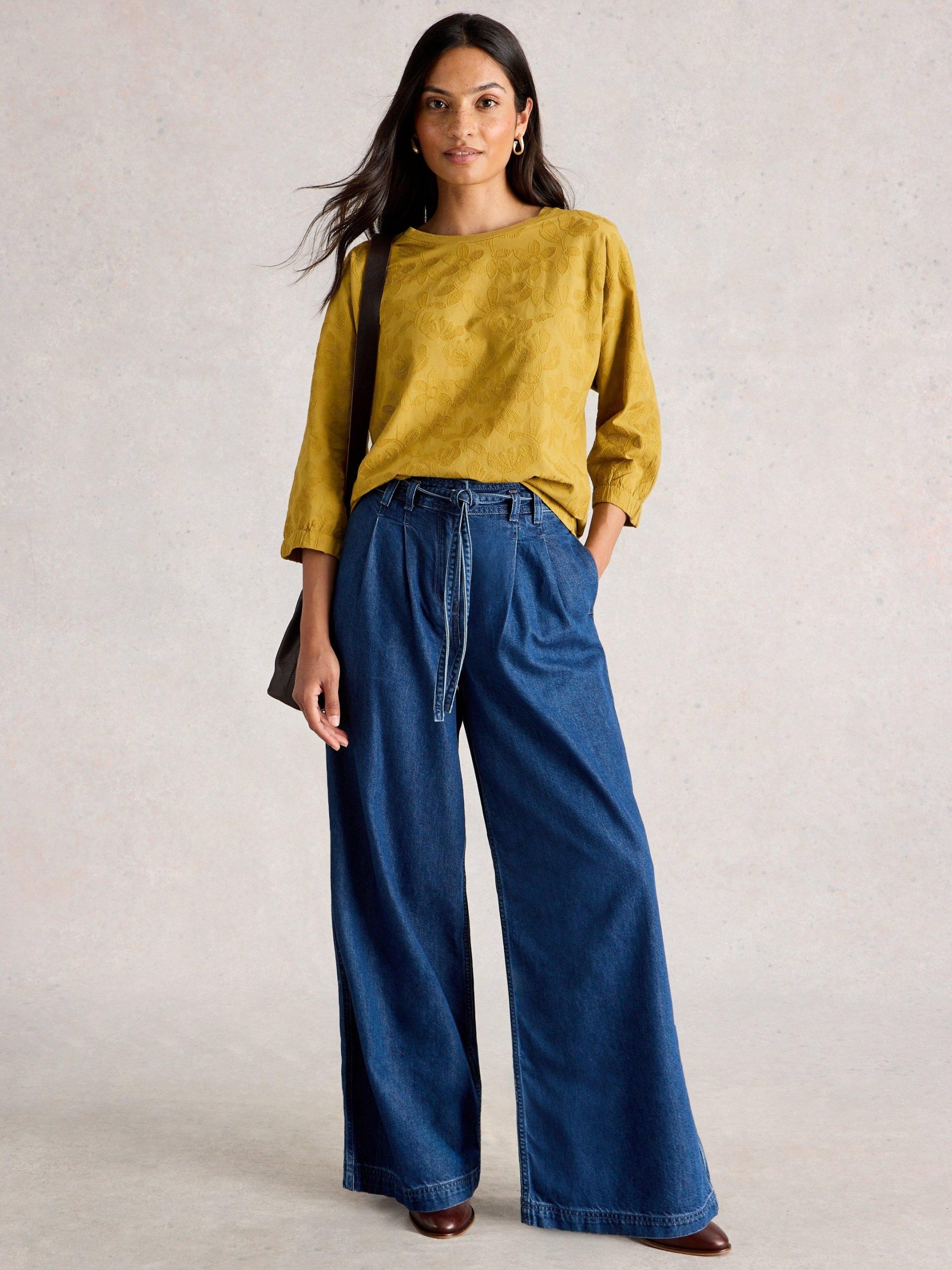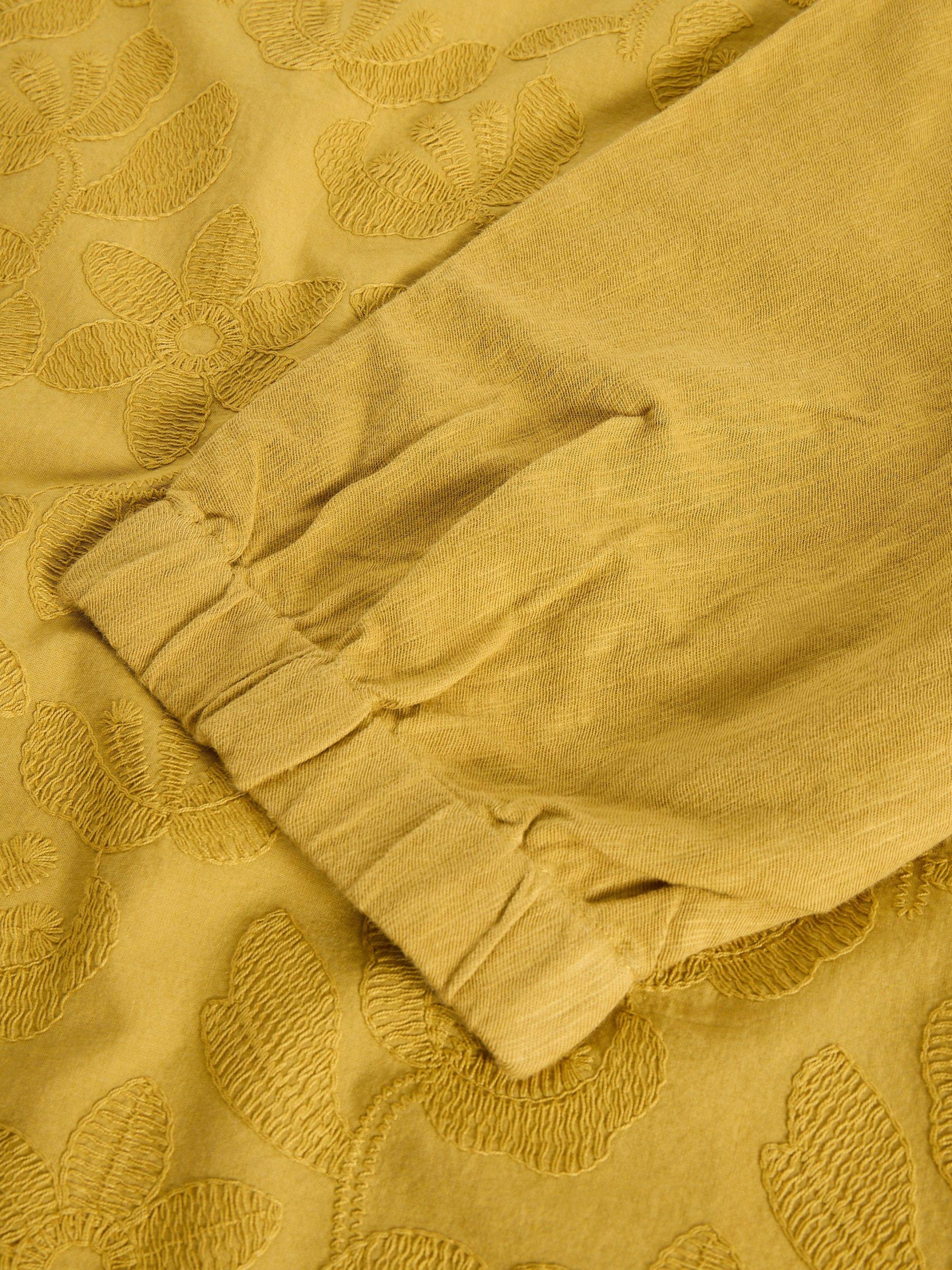 Soft, fluttery and embroidered with little flowers. This top blooms year-round.