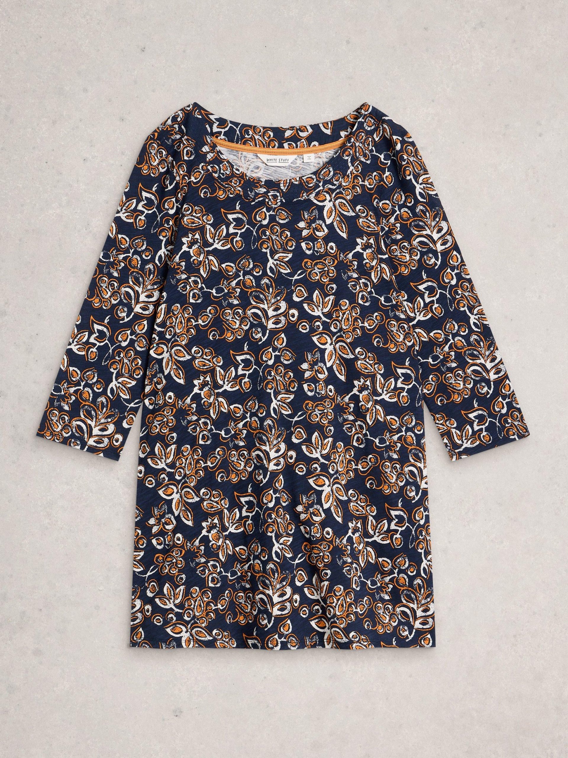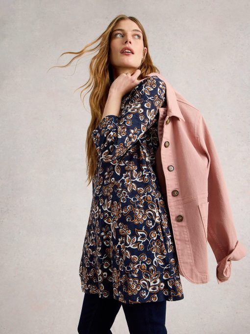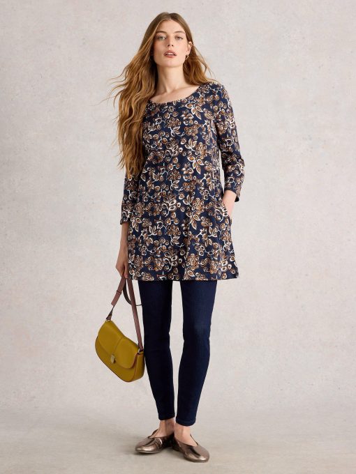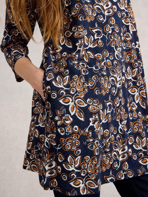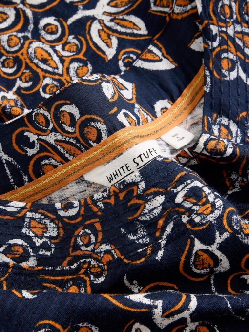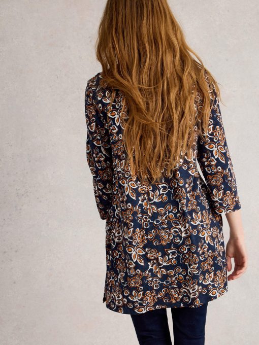 This patterned tunic has lovely trim details and pairs well with jeans or summery trousers. And a day of fun plans.