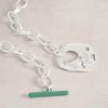 A chunky chain with a locking charm. It reminds us a bit of a cool pebble or shell you might pick up on the beach. Except this one’s golden. (So it’s worth holding onto.)